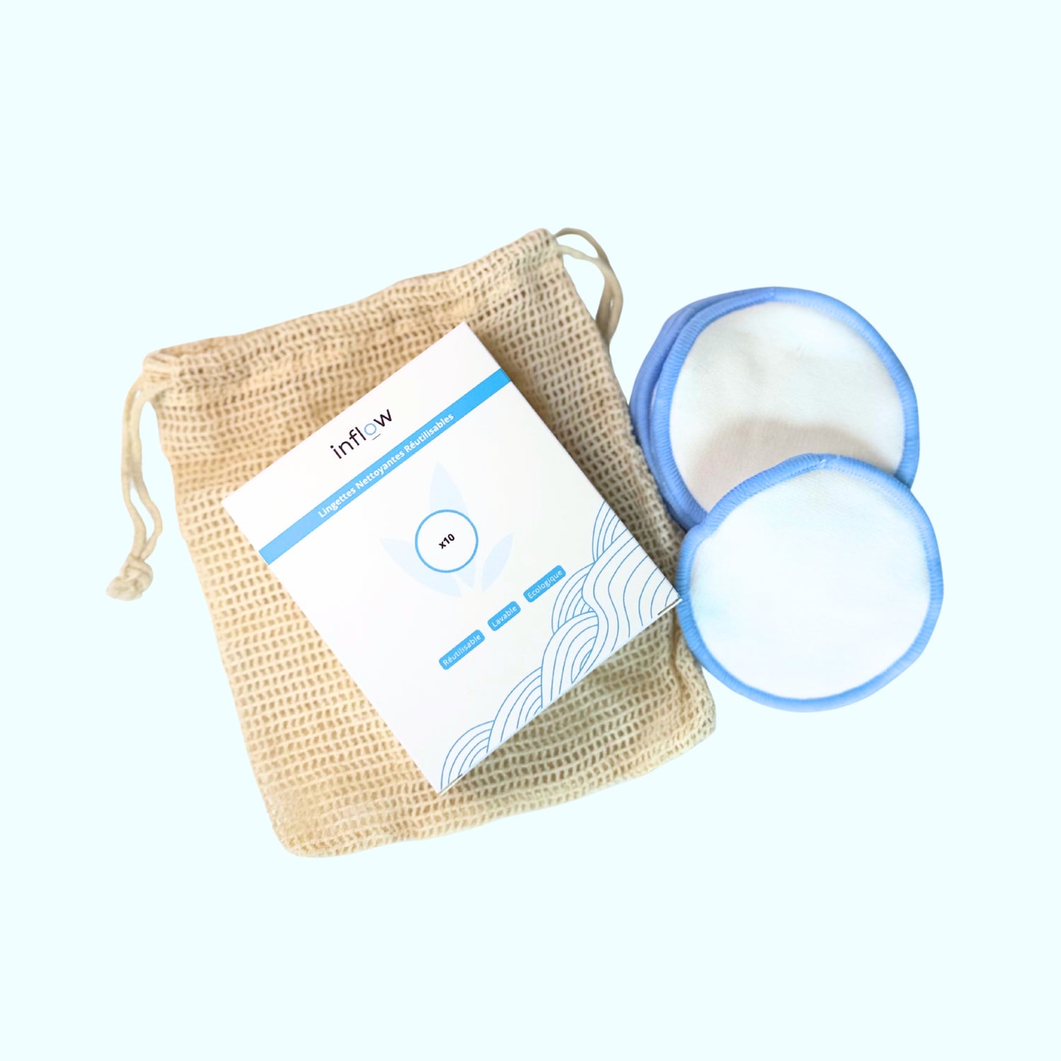 10 lingettes réutilisables, pensées pour le soin de votre peau avant l’application des patchs Inflow.